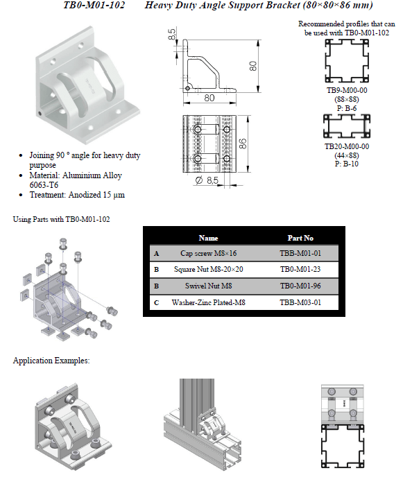 Angle support bracket Heavy duty (80mm x 80mm x 86mm)