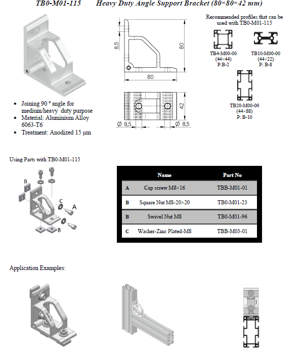 Angle support bracket Heavy duty (80mm x 80mm 42mm)