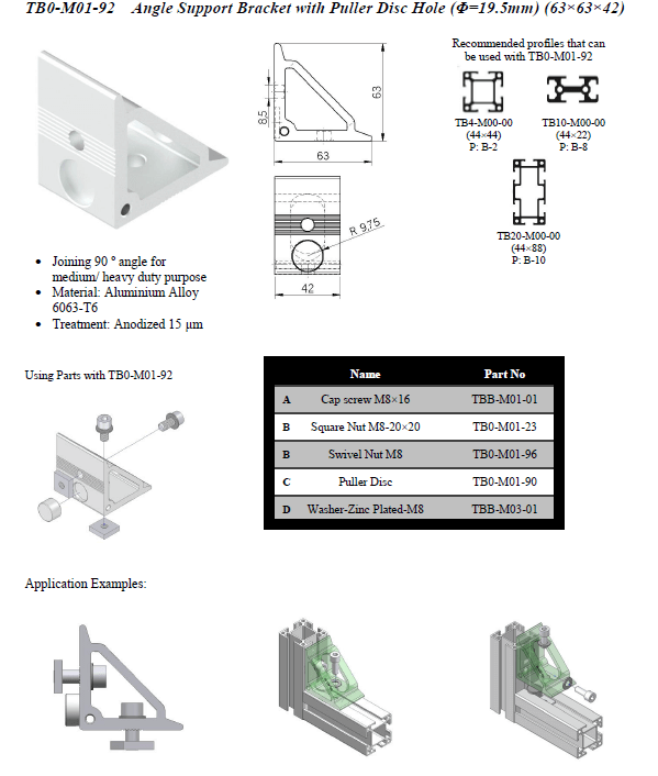 Angle support bracket puller disc (Ø = 19.5mm)(63mm x 63mm x 42mm)