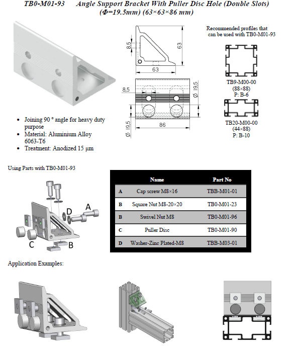 Angle support bracket puller disc (Ø = 19.5mm)(63mm x 63mm x 86mm)