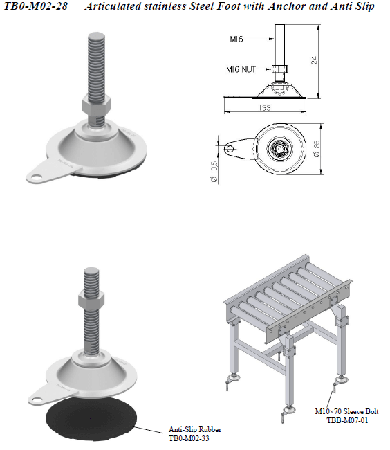 Articulated stainless steel foot with ancho and anti-slip