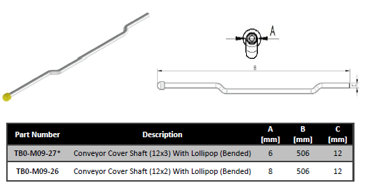 Conveyer cover shaft (12×2) with lollipop (straight)