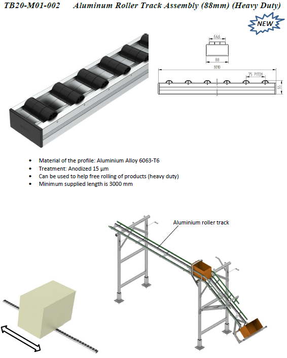Aluminium roller track assembly (88mm).