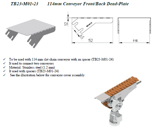 114mm Conveyor front/back dead-plate.