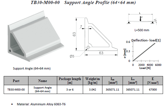 Support angle (64mm x 64mm).