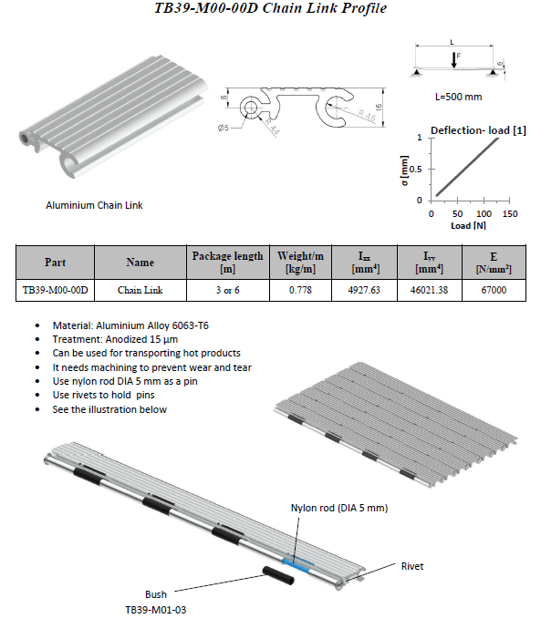 Nylon rod DIA 5 mm as a pin. Use rivets to hold pins. Needs machining to prevent wear ad tear. Can be used for transporting hot products.