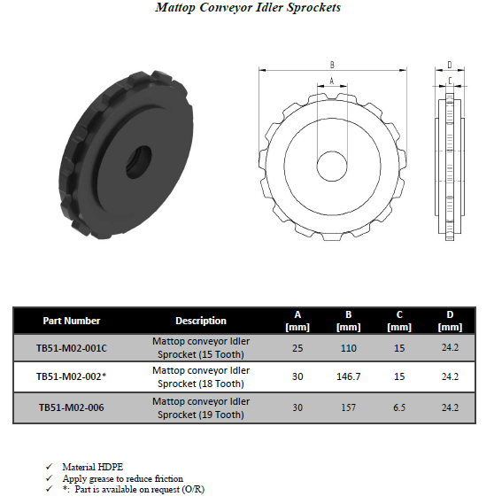 Mattop Conveyer Idler Sprocket (18 tooth).