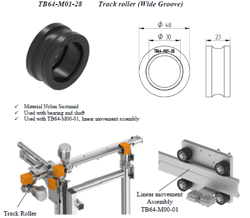 Bearing and shaft. also with TB64-M00-01, linear movement assembly.