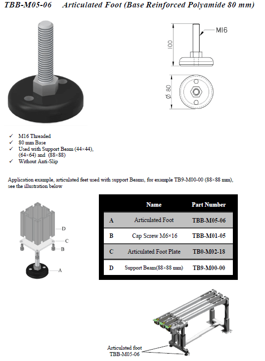 M16 threaded. 80 mm base. Used with support beam (44×44), (64×64) and (88×88). Without anti-slip.
