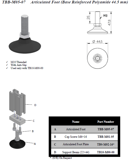 M10 threaded. With anti-slip. Used only with TB10-M00-00.
